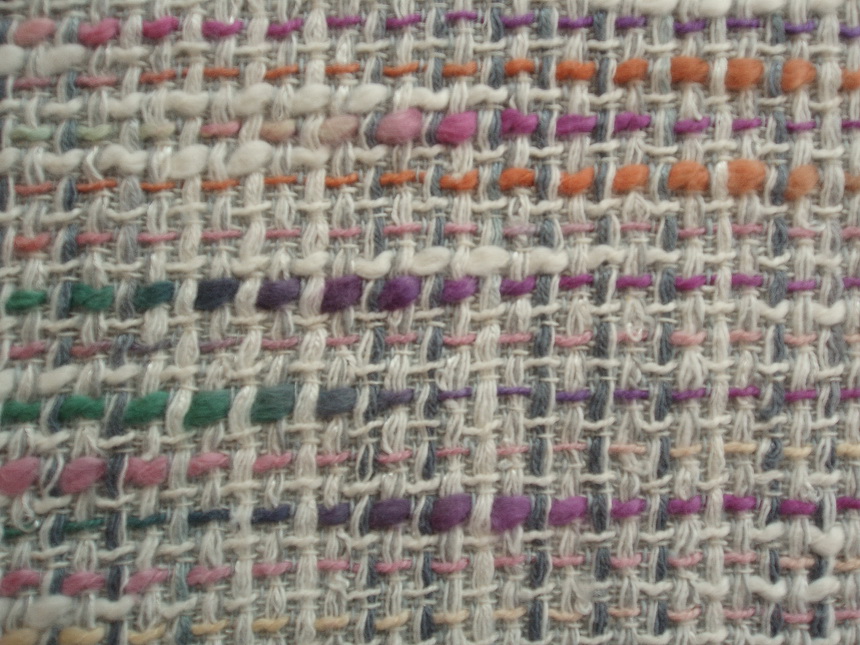 Das Kettgarn besteht aus hellgrauen und ivoryfarbenen Garnen. Das Schussgarn zeigt einen harmonischen Farbverlauf von Vanillegelb, Altrosa, Pink, Orange bis hin zu Flieder und Grün. Keine dieser Farben ist dominierend, und somit ist dieser Tweedstoff wunderbar kombinierbar mit vielen Farbtönen. Der Stoff ist weich und anschmiegsam aber auch fest im Griff.