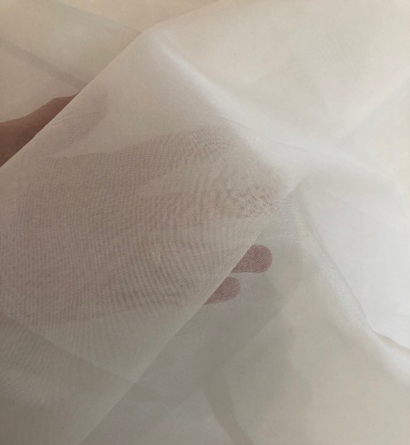 Diesen sehr feinen Seiden-Organza in elegantem Elfenbein-Ton erhalten Sie in der Breite von 135 cm. Die Transparenz dieser Seide können Sie auf dem letzten Foto in der Produkt-Galerie sehen.