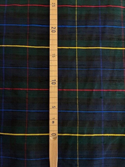 Unser hochwertiger Seidenstoff Dupionseide „Philipp“ ist ein Seidenstoff mit klassischem Karomuster in den Farben dunkelgrün, blau, rot und gelb. Diese stilvolle Dupionseide vereint ein dezent, klassisches Karomuster auf dunklem Grund mit einer natürlichen Struktur – ideal für elegante Modeprojekte, Trachten, Accessoires oder stilvolle Dekorationen.