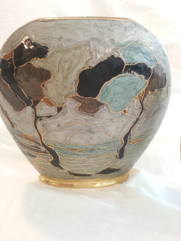 Vase mit floralen Motiven aus massivem Messing mit einem Emaille-Überzug (Cloisonne Technik). Handgefertigt in Indien.