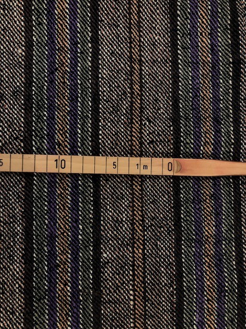 Diese edle, in dunklen Farb-Tönen gestreifte Wildseide ist ein hochwertiger Seidenstoff mit einer, durch die Webart, an Tweed erinnernden Struktur. Die Köperbindung und die Haptik verleihen diesem Stoff eine rustikale Optik – ideal für Kleidungsstücke mit besonderem Charakter.