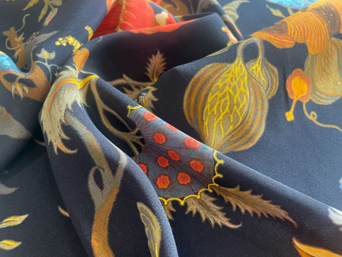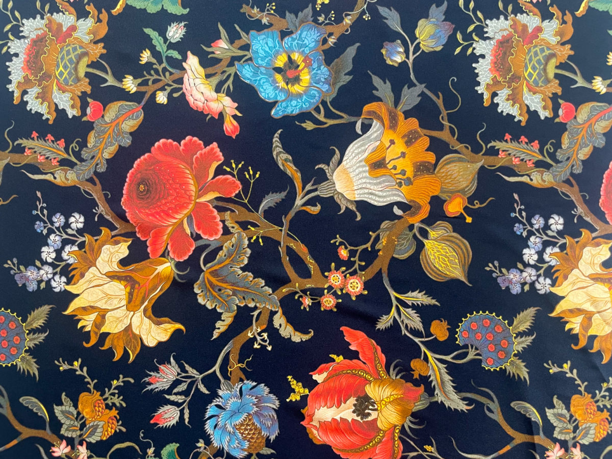• Bedruckte Seidenstoffe mit exklusiven Mustern