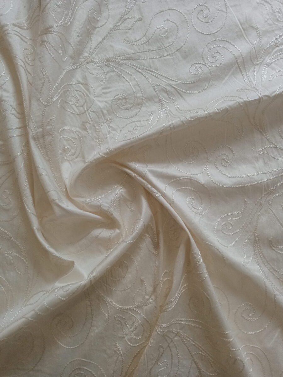 Sie weist einen wunderschönen edlen Glanz auf. Typisch für die Dupionseide sind unregelmäßige Fadenverdickungen, die der Seide eine interessante charakteristische Haptik sowie Optik geben.