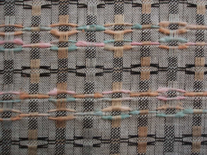 Wir präsentieren Ihnen hier eine besonders ausdruckstarke Wildseide. Der Stoff besteht überwiegend aus Seide und einem kleineren Anteil Viskose. Er ist in einer aufwendigen Webtechnik hergestellt, ist griffig und fällt relativ schwer. Der grau-melierte Stoff harmoniert wunderbar mit den pastellfarbigen Schussgarnen in apricot, rosé und türkis.