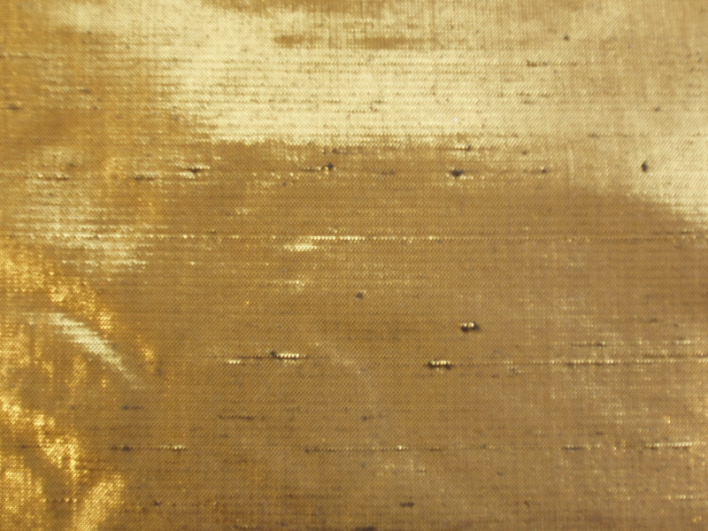Bei dem Farbton „gold“ wurde als Kettgarn goldener Lurex eingesetzt, das Schussgarn besteht aus schwarzer Dupionseide. Wie bei allen anderen Dupionseiden finden Sie auch in diesem Stoff die typischen, charakteristischen Verknüpfungspunkte, die eine Dupionseide auszeichnen und den Stoff lebendig wirken lassen. Schauen Sie sich bitte auch die anderen Bilder an, der Stoff ist aus verschiedenen Perspektiven abgebildet.